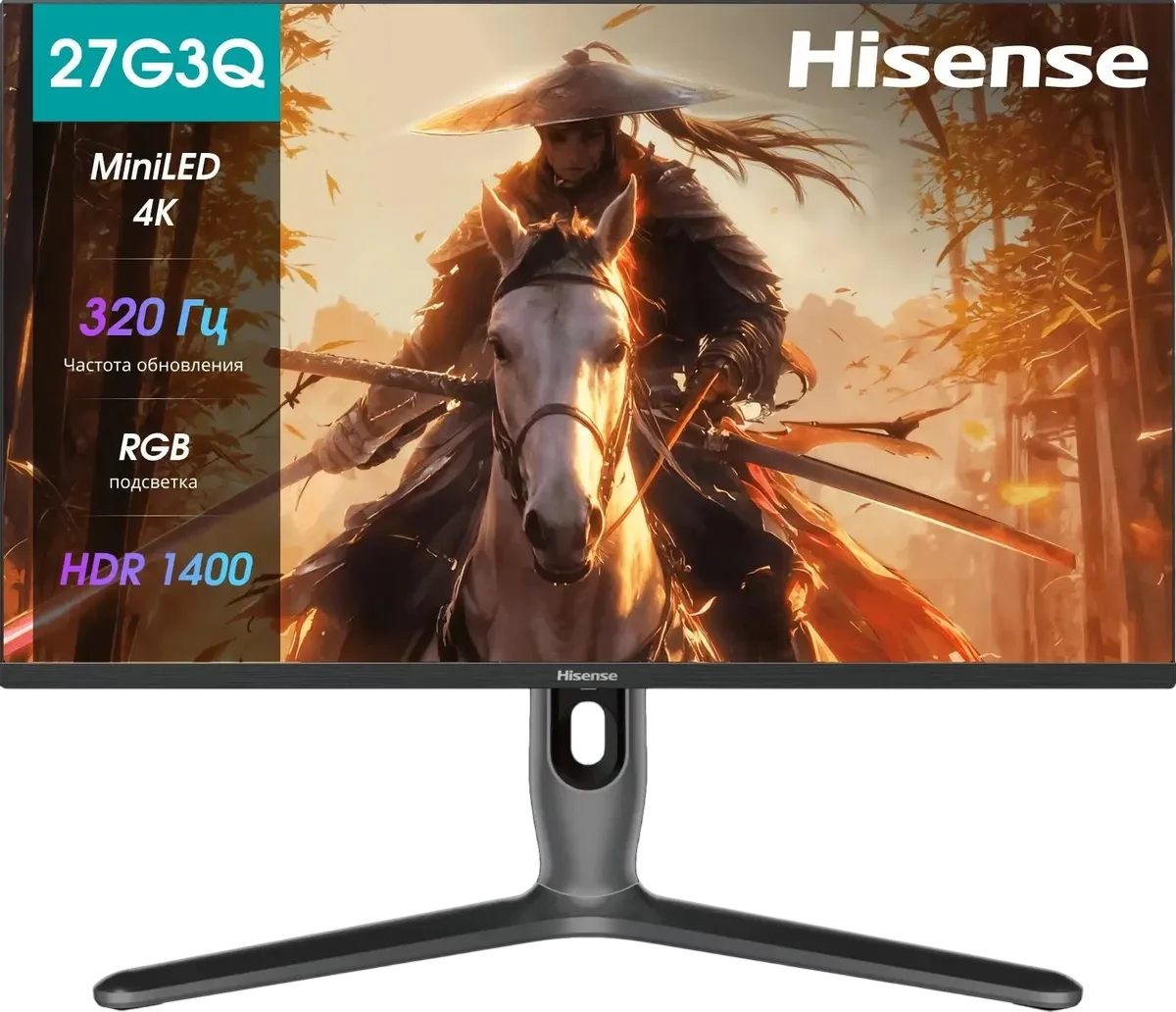 Монитор Hisense/ 27"/ 3840x2160, IPS/ MiniLED, Local Dimming 1152 zone, 16:9, матовый, 160Hz(UHD)? 320Hz(FHD), время отклика 1мс, 350кд/ м2, 1000:1,DisplayPort, HDMI*2, Type-C, USB HUB 3, черный, 2025 (27G7Q-PRO)