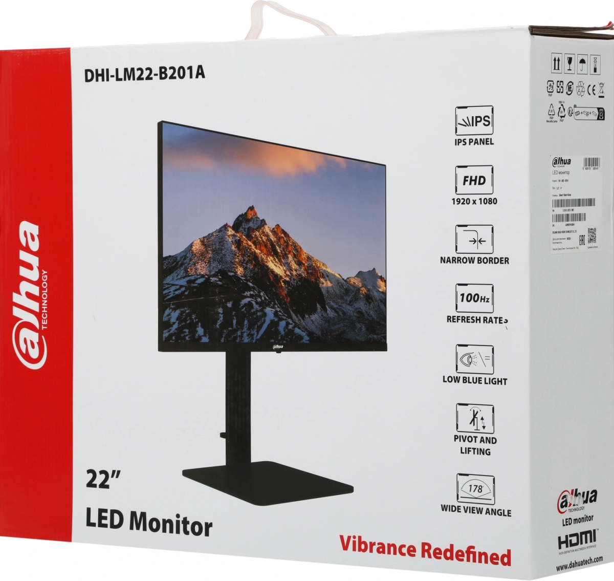 Монитор Dahua 21.5" DHI-LM22-B201A черный IPS LED 4ms 16:9 HDMI матовая HAS Piv 1000:1 250cd 178гр/ 178гр 1920x1080 100Hz VGA DP FHD 2.96кг