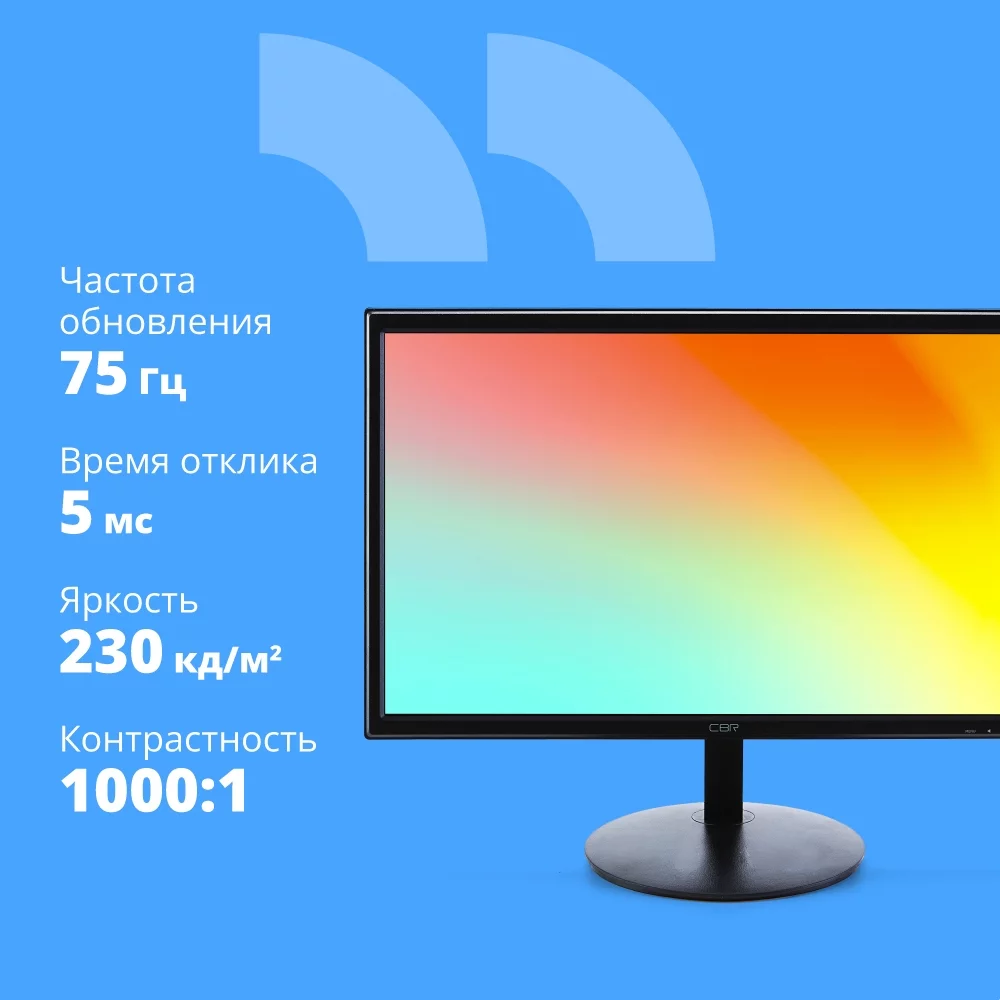 Монитор CBR 21.5" MF-2201, IPS, FHD 1920x1080, 75Гц, 1*VGA, 1*HDMI, внутренний БП, черный, кабели 1*HDMI+1*VGA 1.5м в комплекте [LCD-MF2201-OPC]
