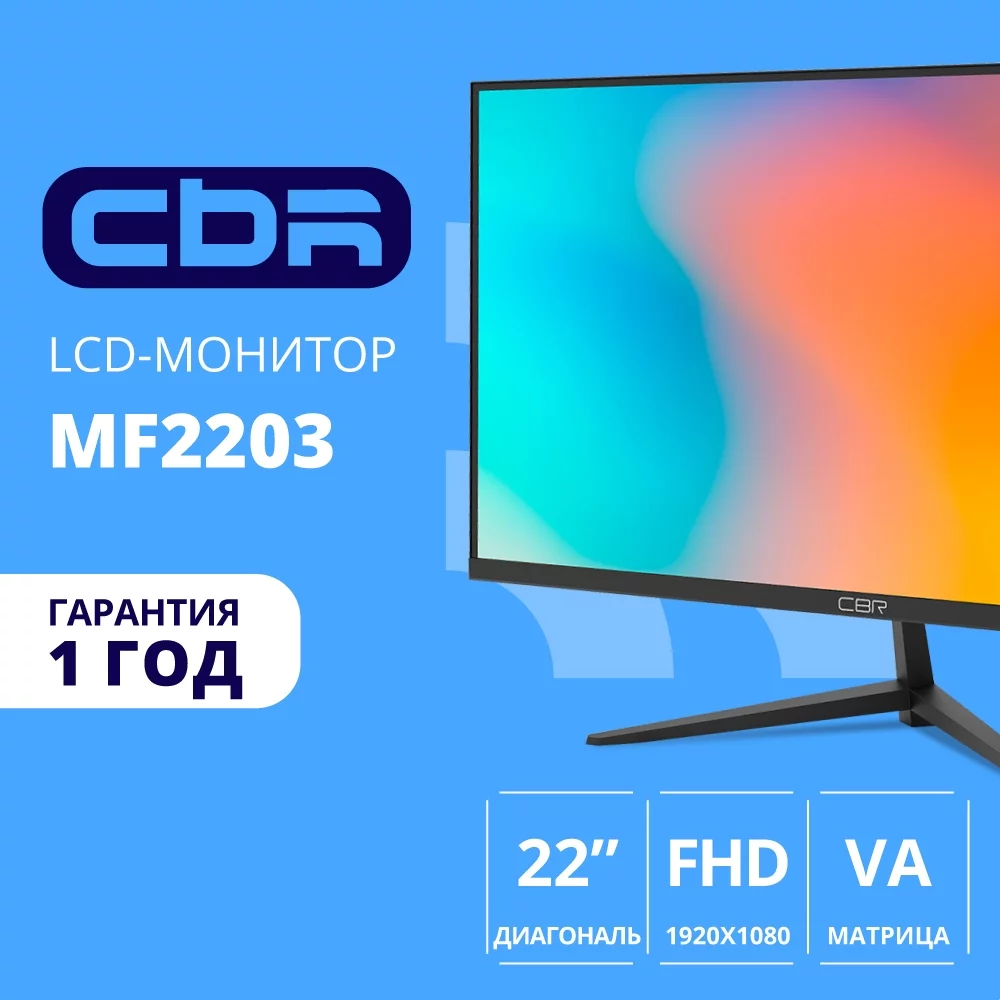 CBR LCD Монитор 21.5" MF-2203 безрамочный, VA, FHD 1920x1080, 75Гц, 1*VGA, 1*HDMI, внешний БП, черный, кабель 1*HDMI 1.5м в комплекте [LCD-MF2203-OPC]