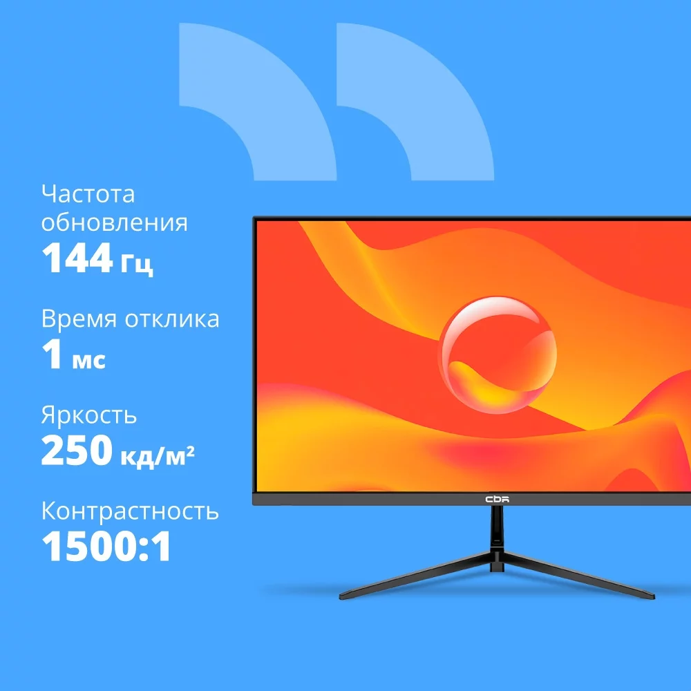 CBR LCD Монитор 23.8" MF-2403 безрамочный, IPS, FHD 1920x1080, 144Гц, 1*DP/1*HDMI, внешний БП, FreeSync, черный, кабель HDMI 1.5м в комплекте [LCD-MF2403-OPC]
