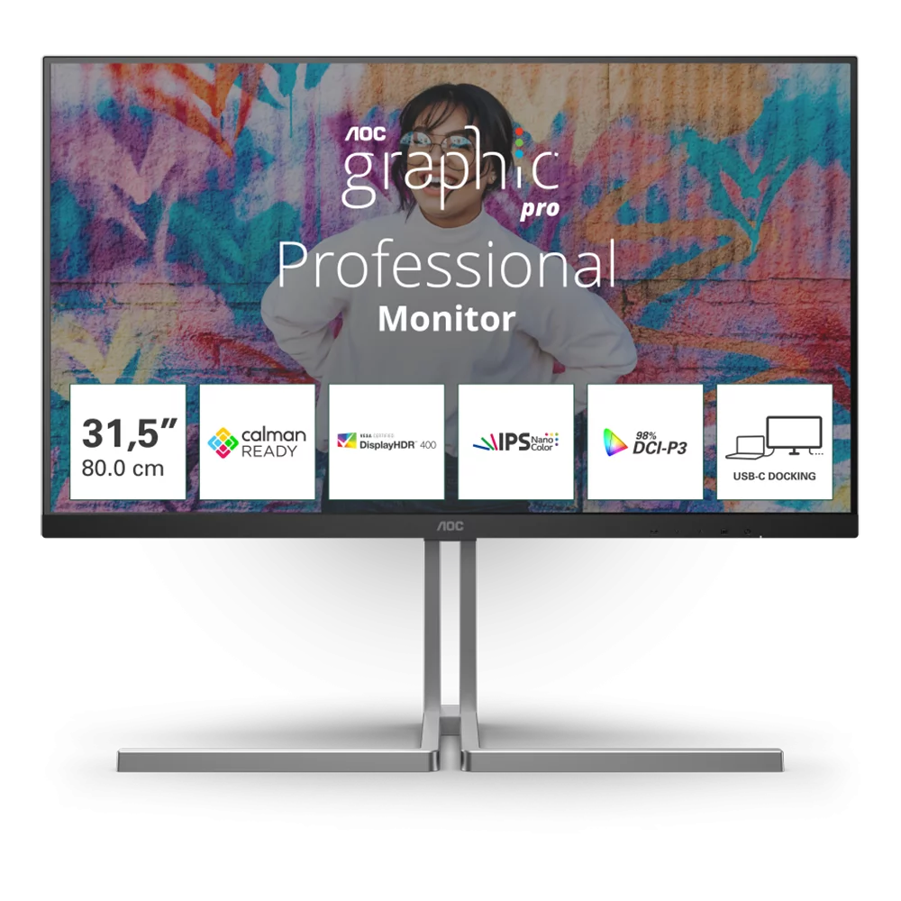 Монитор 31.5" AOC U32U3CV Black (4K, IPS, 3840x2160, 4 ms, 178°/178°, 400 cd/m, 50M:1, +2xHDMI 2.0, +DisplayPort 1.4, +4xUSB 3.2, USB Type-C, +MM, +RJ45)