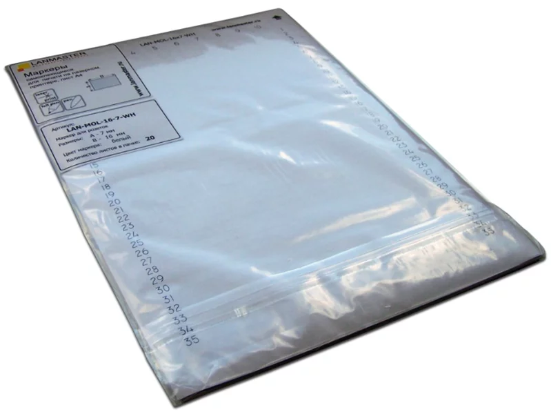 Маркер самоклеющийся, л.А4, 16х7, на розетки, белый, 350 шт/ л. (LAN-MOL-16X7-WH)