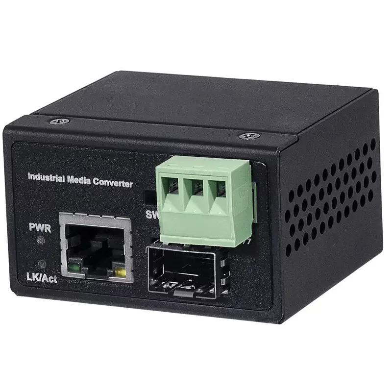 Промышленный компактный медиаконвертер Gigabit Ethernet, SFP 1000Мбит/c, RJ45 10/100/1000Мбит/c, поддержка LFP; Встроенная грозозащита 6kV. Питание: 1 x ? (NS-MC-1G1GX/IS)