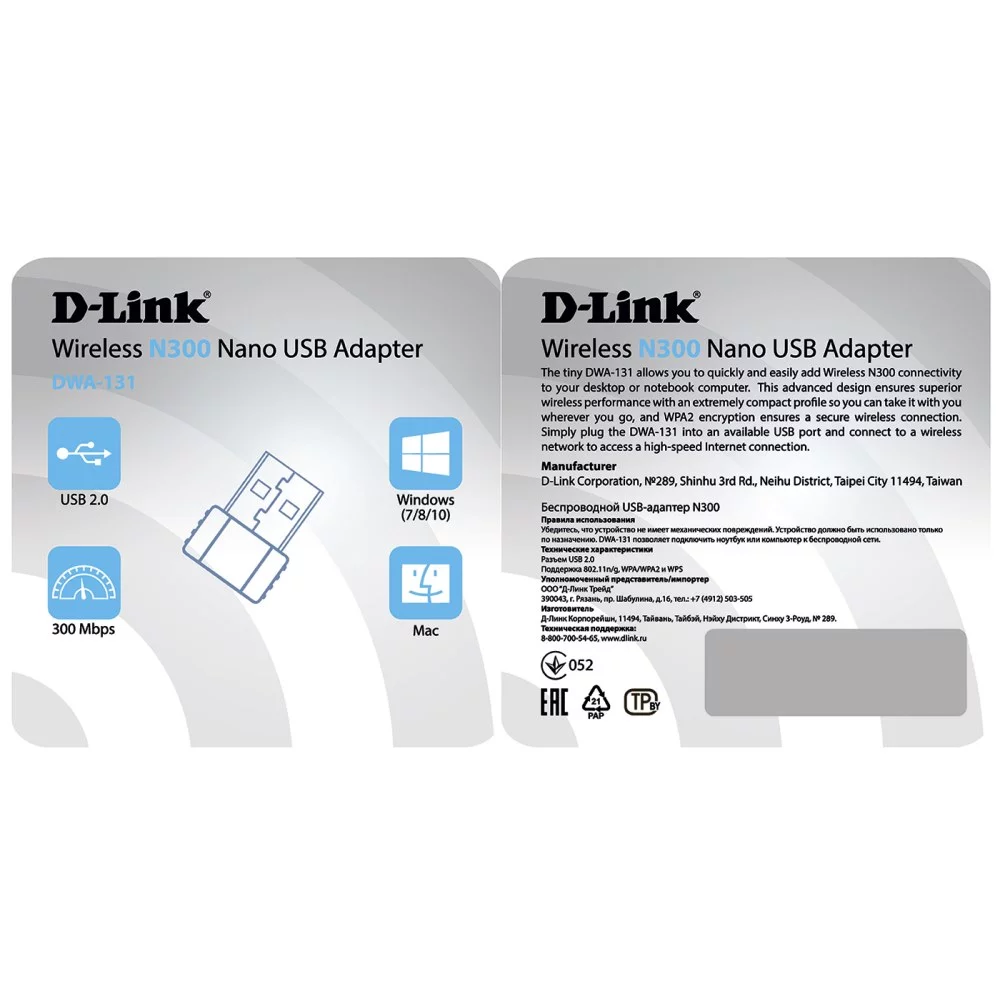 - WiFi адаптер D-Link D-Link DWA-131 (DWA-131/F1A) (DWA-131/F1A)