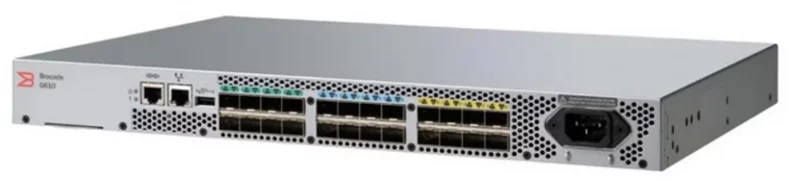 Brocade G610 24x32G ports Fibre Channel Switch, 24-port licensed, 24x32Gb SFP+ transceivers (analog DS-6610B, SN3600B, SNS2624, DB610S) (BR-G610-24-32G)
