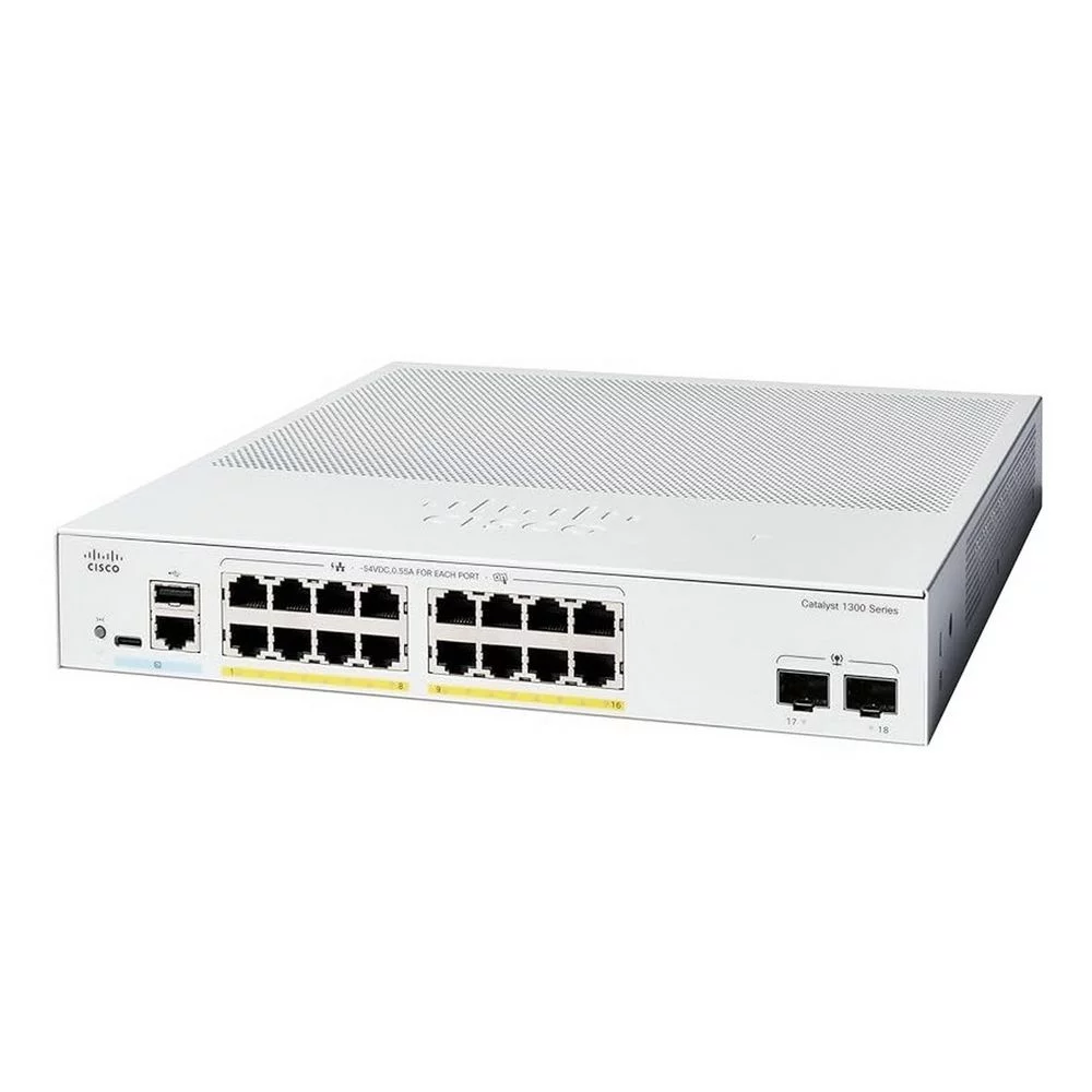 Коммутатор CISCO Catalyst 1300 16x 10/ 100/ 1000 RJ-45 PoE+, 2x 1Gb SFP uplinks, PoE+ 120W, Fanless, C1300-16P-2G-L