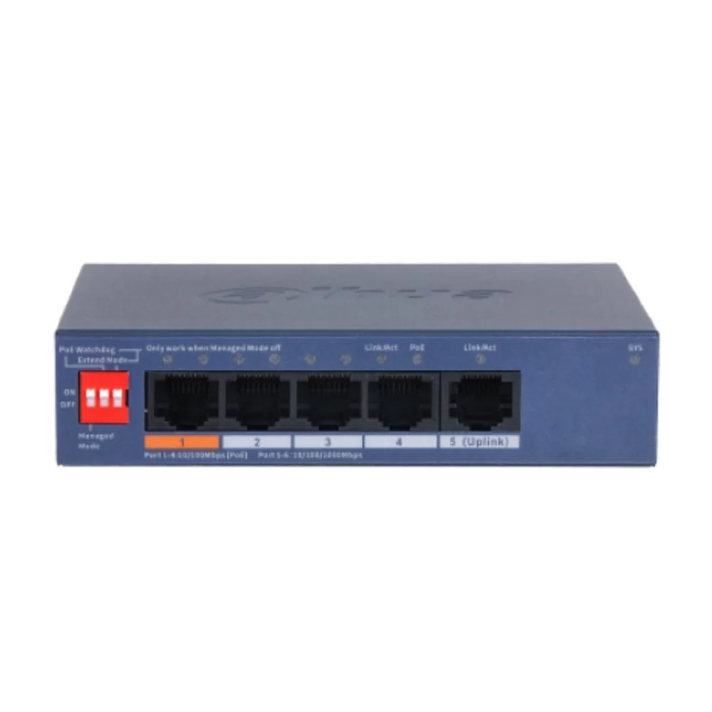 DAHUA DH-CS4005-4ET1GT-60 4-портовый гигабитный PoE коммутатор с функцией облачного управления, 4xRJ45 100Mb, 1xRJ45 1Gb uplink, суммарно 60Вт