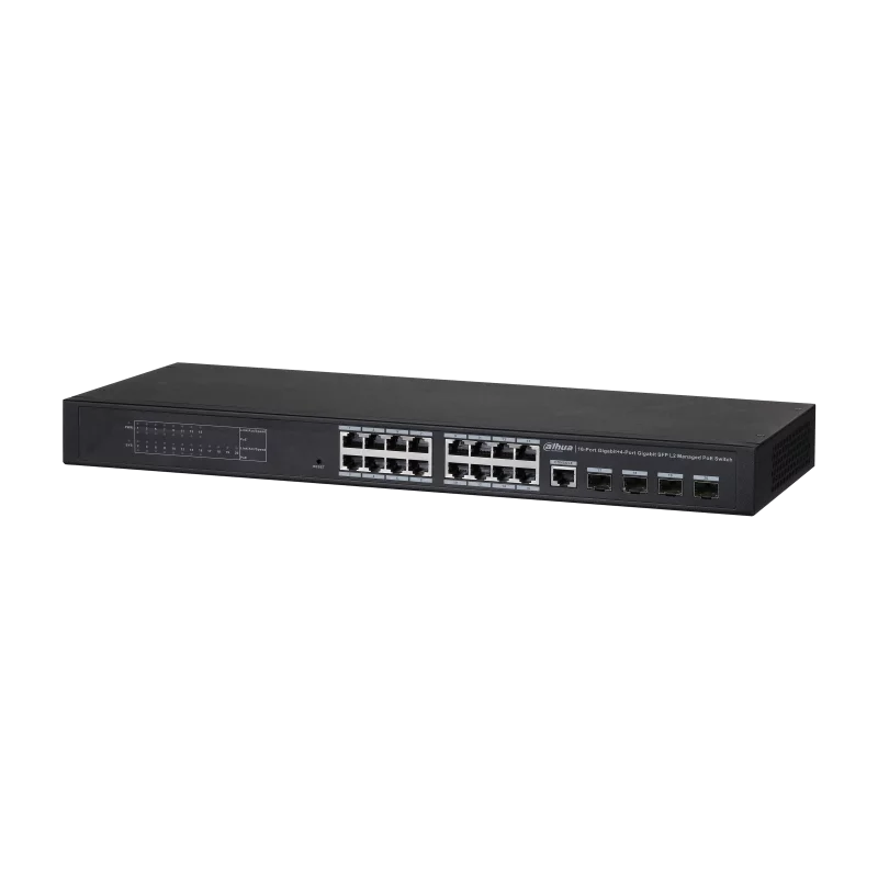 DAHUA DH-PFS4420-16GT-240 20-портовый гигабитный управляемый коммутатор с PoE уровня L2, 16xRJ45 1Gb PoE, 4xSFP 1Gb, суммарно 240Вт, коммутация 40 Гбит/ с, MAC-таблица 8К, металл