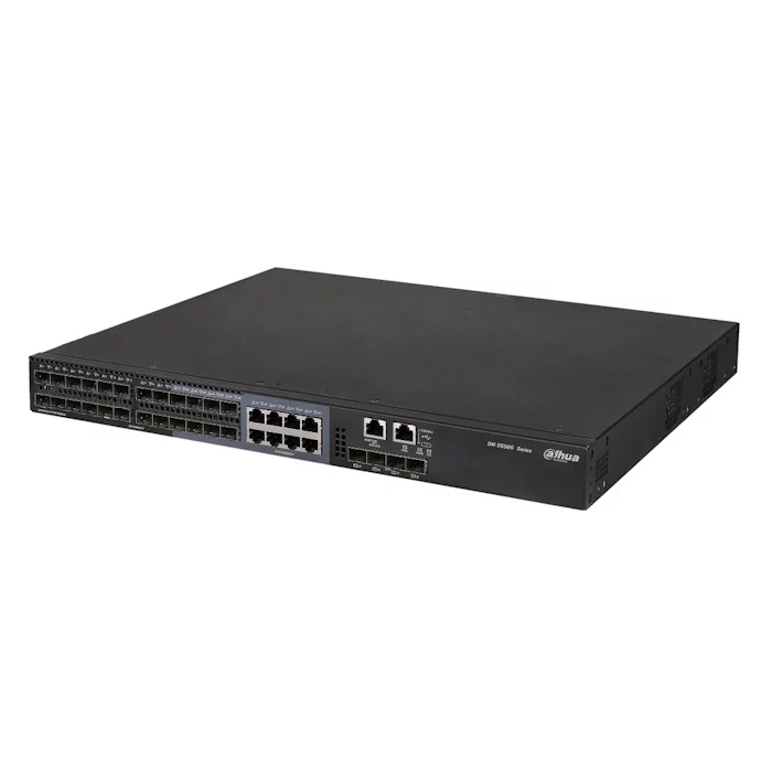 *Коммутатор Dahua DH-S5500-24GF4XF-E 28-портовый управляемый коммутатор, уровень L2+Порты: 16 SFP 1000Мбит/ с, 8 комбинированных SFP/ RJ45 1000Мбит/ с, 4 SFP+ 10Гбит/ с (uplink), питание: 100~240В(AC), грозозащита: до 2кВ (DH-S5500-24GF4XF-E)