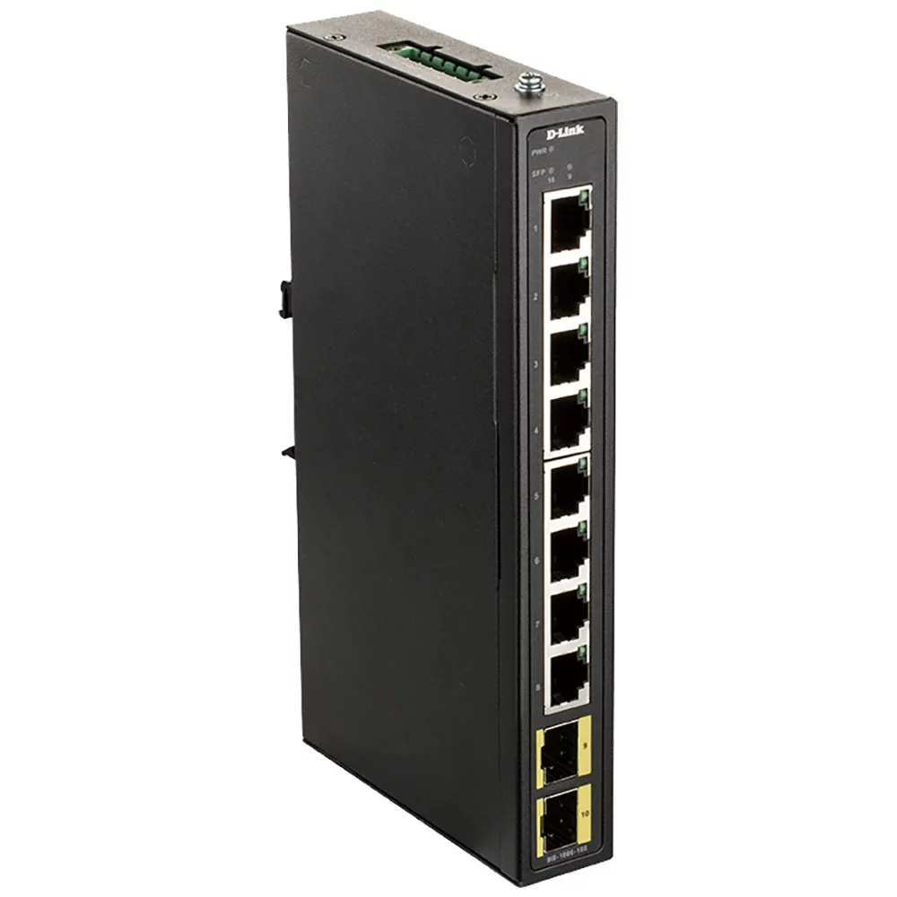 Коммутатор/ DIS-100G-10S Unmanaged Industrial Switch 8x1000Base-T, 2x1000Base-X SFP, Surge 6KV, Alarm relay, DIN-Rail, metal case IP40, -20 to 65°C, only DC power, w/o power supply (DIS-100G-10S/A2A)