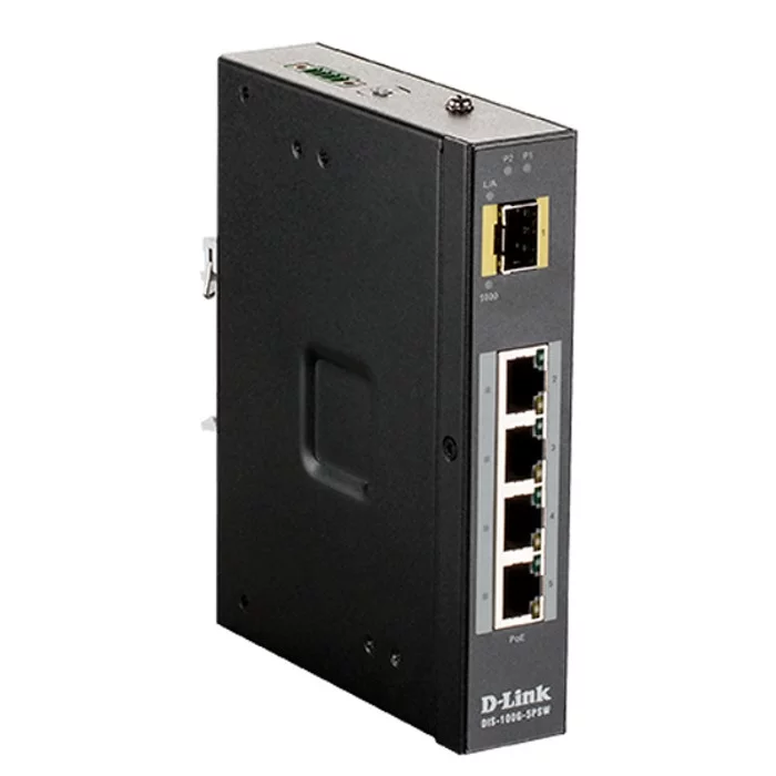 Коммутатор/ DIS-100G-5PSW Unmanaged Industrial Switch 4x1000Base-T PoE, 1x1000Base-X SFP, PoE Budget up to 120W, Surge 2KV, DIN-Rail, metal case IP30, -40 to 75°C, only DC power, w/o power supply (DIS-100G-5PSW/A1A)
