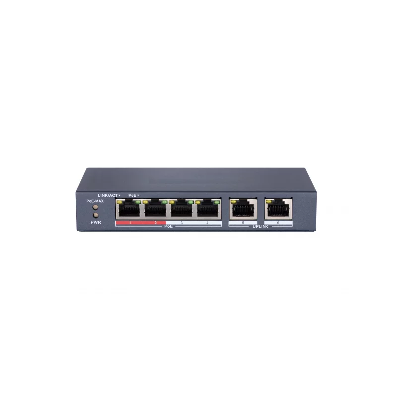 Сетевой неуправляемый коммутатор 4 RJ45 1000M PoE порта; 1 Uplink порт 1000М Ethernet; PoE: IEEE802.3af IEEE802.3at; бюджет PoE 35Вт; поддержка режима передачи до 100? (DS-S504GP)
