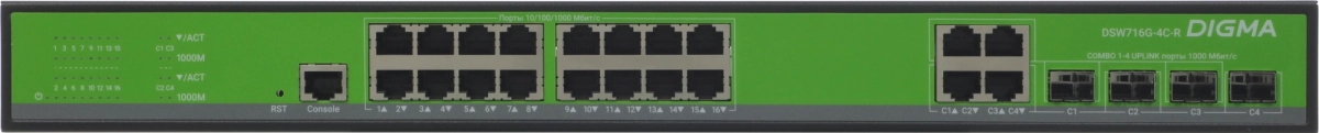Коммутатор Digma DSW716G-4C-R (L2+) 16x1Гбит/с 4xКомбо(1000BASE-T/SFP) управляемый