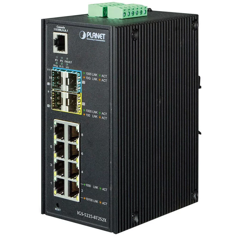 коммутатор/ PLANET IP30 Industrial L2+/L4 8-Port 1000T 802.3at PoE+ 4-port 100/1000X SFP Full Managed Switch (-40 to 75 C, dual redundant power input on 48~56VDC terminal block, DIDO, ERPS Ring Supported, 1588) (IGS-5225-8P4S)
