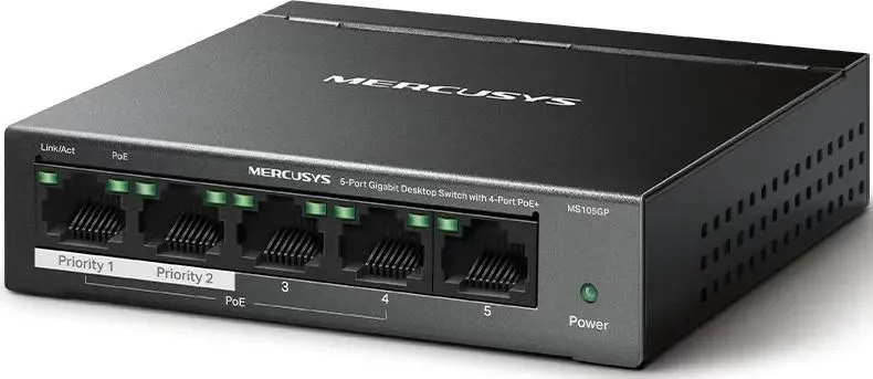 Настольный коммутатор с 5 гигабитными портами (4 порта PoE+) (MS105GP)