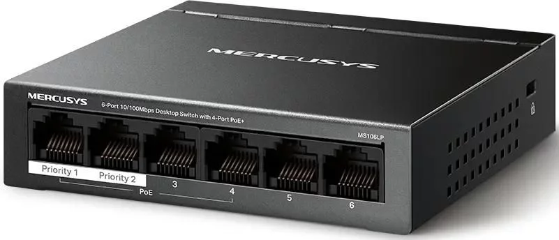 Настольный коммутатор с 6 портами 10/ 100 Мбит/ с (4 порта PoE+) (MS106LP)