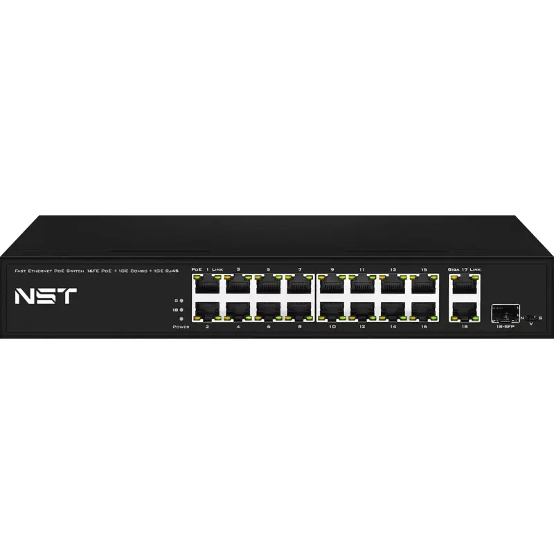 PoE коммутатор Fast Ethernet на 16 x RJ45 PoE + 2 x RJ45 GE + 1 SFP GE порта. Порты: 16 x FE (10/100 Base-T) с поддержкой PoE (IEEE 802.3af/at), 2 x GE Uplink (RJ45), 1 x GE SFP Uplink. Соответс? (NS-SW-16F3G-P)