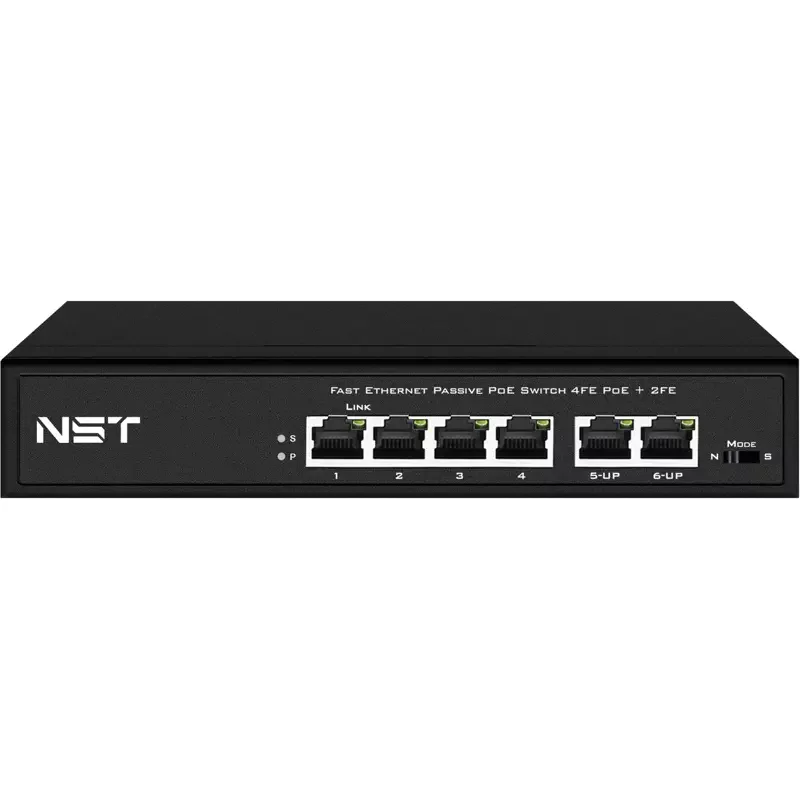 PoE коммутатор Fast Ethernet на 6 RJ45 портов. Порты: 4 х FE (10/100 Base-T) с поддержкой PoE (IEEE 802.3af/at), 2 x FE (10/100 Base-T) Uplink. Соответствует стандартам PoE IEEE 8 (NS-SW-4F2F-P)