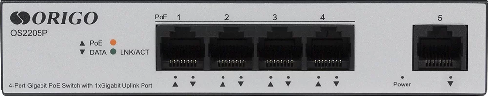 Коммутатор/ Unmanaged Switch 4x1000Base-T PoE, 1x1000Base-T, PoE Budget 60W, Long-range PoE up to 250m, metal case (OS2205P/60W/A1A)