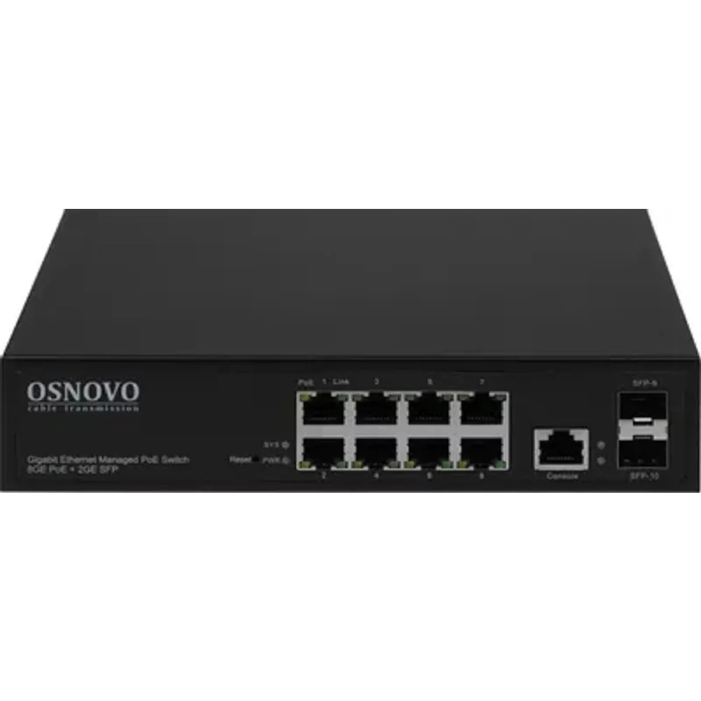 SW-80802/ L(150W) Управляемый L2 PoE коммутатор Gigabit Ethernet на 8 RJ45 PoE + 2 x GE SFP порта. (OSN-13595)