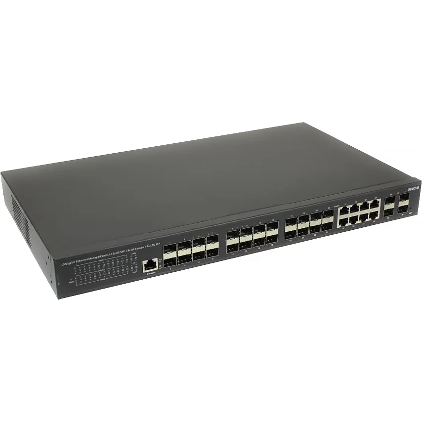 Коммутатор Gigabit Ethernet c 10G портами OSNOVO SW-32G4X-1L Управляемый L3 коммутатор Gigabit Ethernet на 16xGE SFP + 8xGE Combo (RJ45 + SFP) + 4x1G/10G SFP+ Uplink. Порты: 16 x GE SFP (1000Base-X) + 8 x GE Combo Port (RJ45 + SFP) + 4 x 1G/