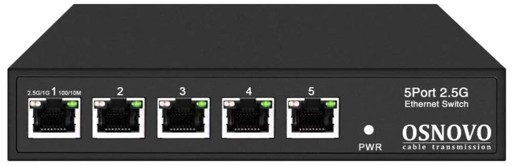 Коммутатор 2.5G Ethernet OSNOVO SW-5D-1 Коммутатор 2.5G Ethernet на 5 RJ45 портов. Порты: 5 x 2.5G (10/100/1000/2500Base-TX). Auto MDI/MDIX. Встроенная грозозащита 3кВ. В комплекте БП DC12V(2A). Размеры (ШхВхГ): 160x31x112мм.