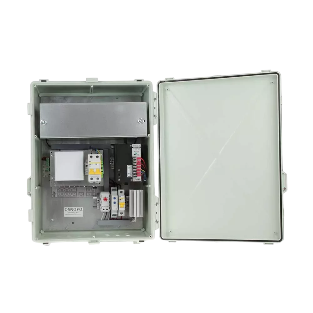 Уличный коммутатор OSNOVO SW-60812/WU Уличный PoE коммутатор на 11 портов с термостабилизацией и резервным питанием (АКБ - 7Ач). Порты: 6 x FE (10/100Base-T) с PoE (до 30W) + 2 x FE (10/100Base-T) с PoE (до 60W) + 1 x G