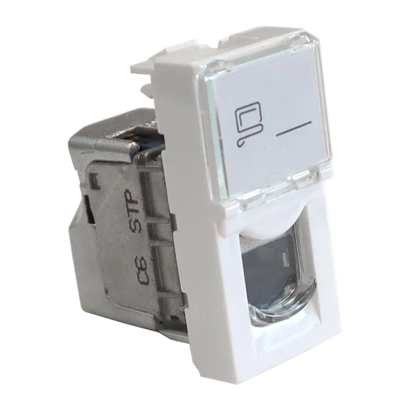 Вставка Mosaic 22.5x45, RJ-45 STP, кат.6, со шторкой и увеличенным окном маркировки, белая (LAN-SIP-22S6-WH)