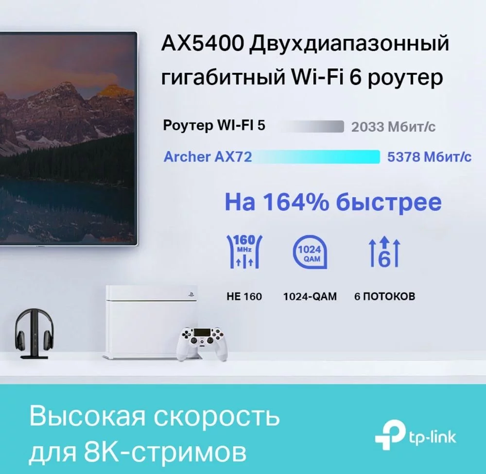 Маршрутизатор TP-LINK Archer AX72 AX5400 Двухдиапазонный гигабитный Wi-Fi 6 роутер