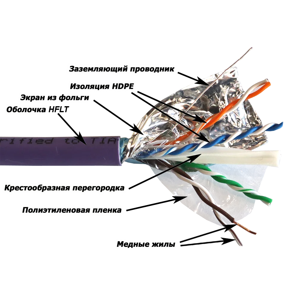 Витая пара Кабель LANMASTER F/ UTP, 4 пары, Кат. 6A, с перегородкой, LSZH, нг(А)-HF, фиолетовый, 305 м (LAN-6AFTP-HFLT-VI)
