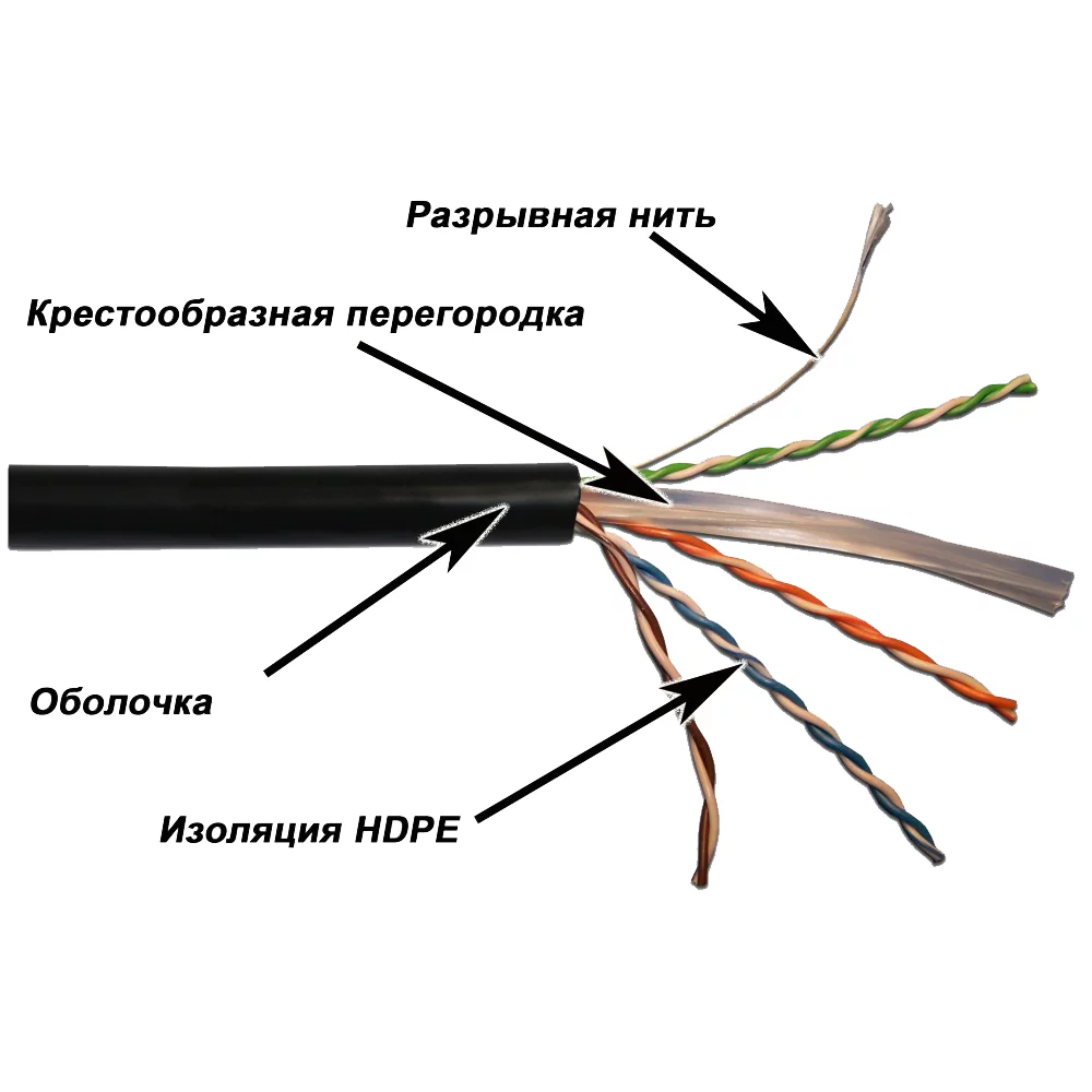Кабель LANMASTER U/UTP, 4 пары, Кат. 6, с перегородкой, 550Mhz, LSZH, нг(A)-HF, черный, 305 м LAN-6EUTP-HFLT-BK