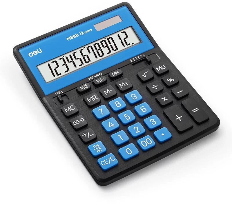 Калькулятор настольный Deli EM888A-BK-BL черный/голубой 12-разр.