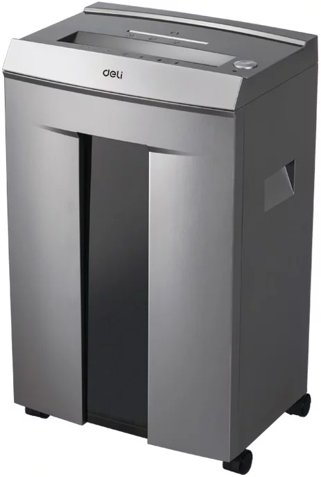 Шредер Deli 9905 серый с автоподачей (секр.P-5) фрагменты 10лист. 20лтр. скрепки скобы пл.карты CD