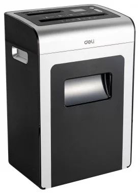 Шредер Deli E9917-EU черный/ белый с автоподачей (секр.P-4) фрагменты 16лист. 31лтр. скрепки скобы пл.карты CD
