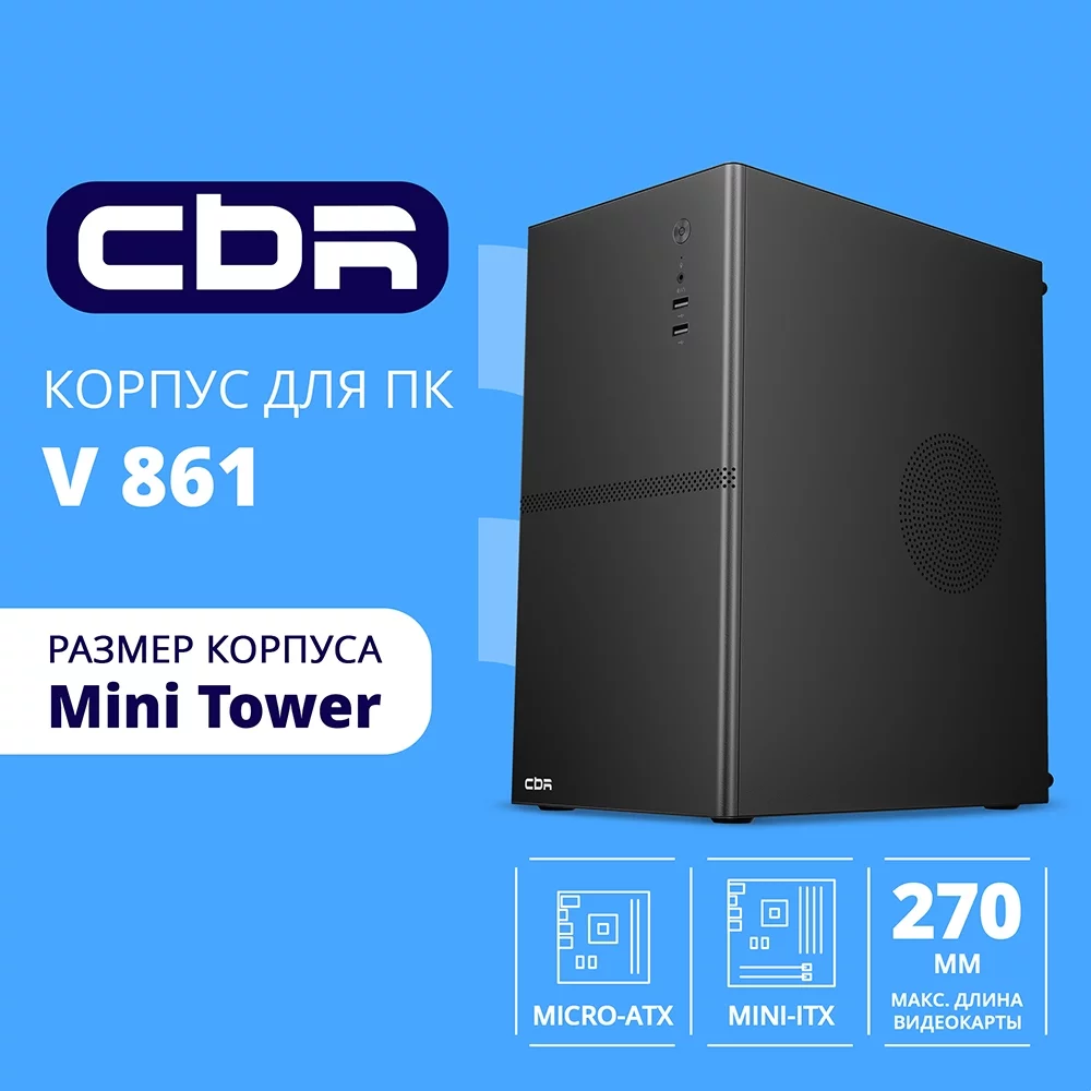 CBR Корпус mATX Minitower V861, без БП, 2*USB 2.0, HD Audio+Mic, Black [PCC-MATX-V861-WPSU]