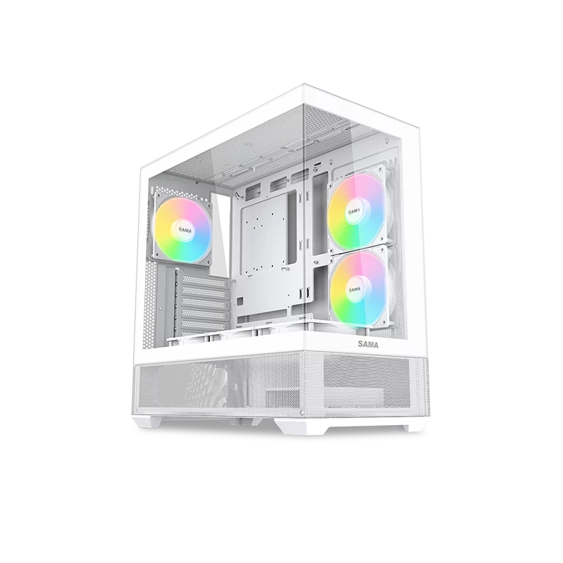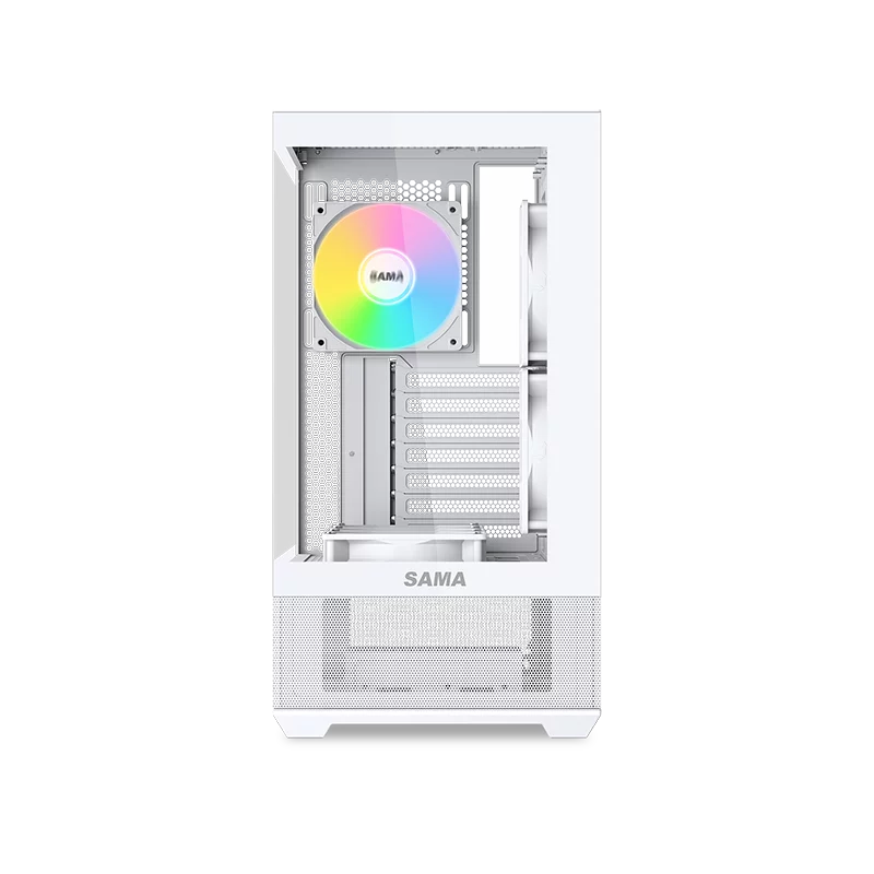 Корпус ПК без блока питания/ Case SAMA V40 White, Midi-Tower, TG, 6x120mm ARGB, 2xUSB 3.0 + 1xUSB 3.1 Type-C, ATX, mATX, mITX White (V40-WHADA6X1-GL)