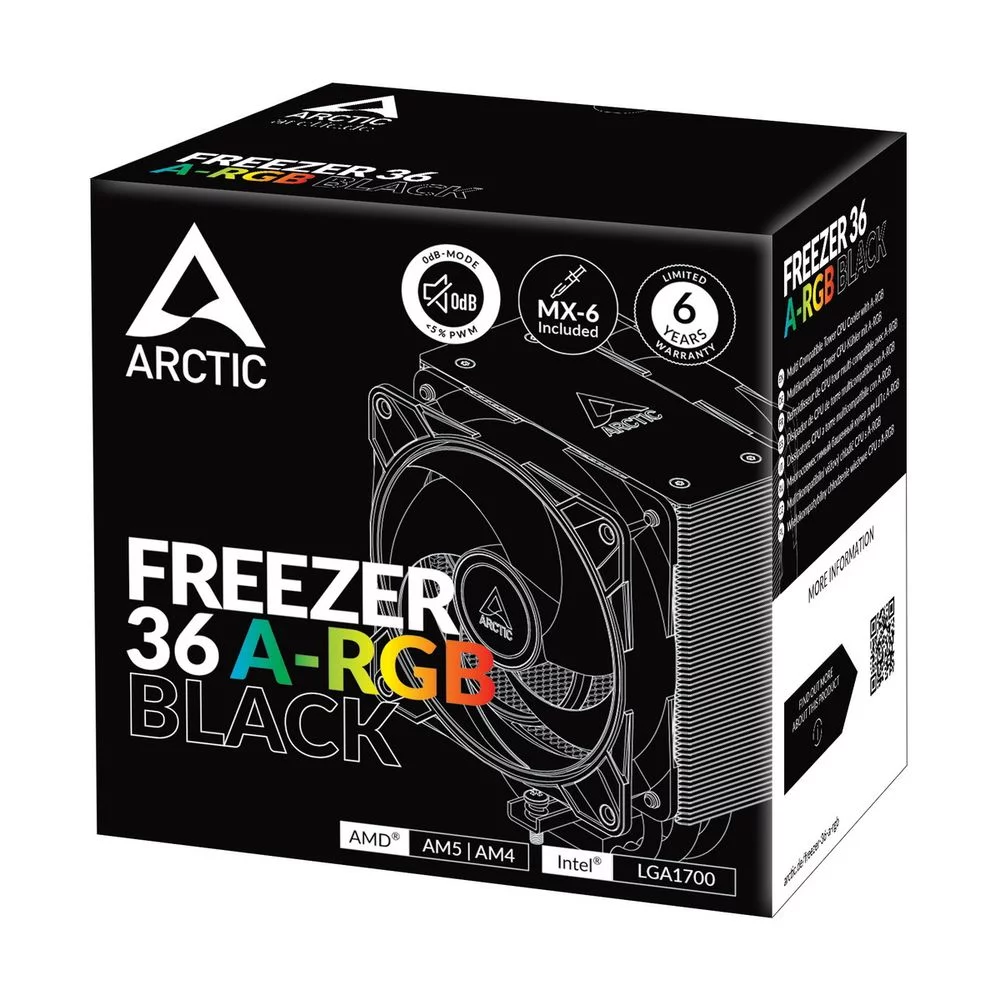 Вентилятор для процессора Arctic Cooling Вентилятор для процессора Arctic Freezer 36 A-RGB (Black) - Retail (Intel: LGA 1851, LGA 1700 AMD: AM5, AM4) (ACFRE00124A)