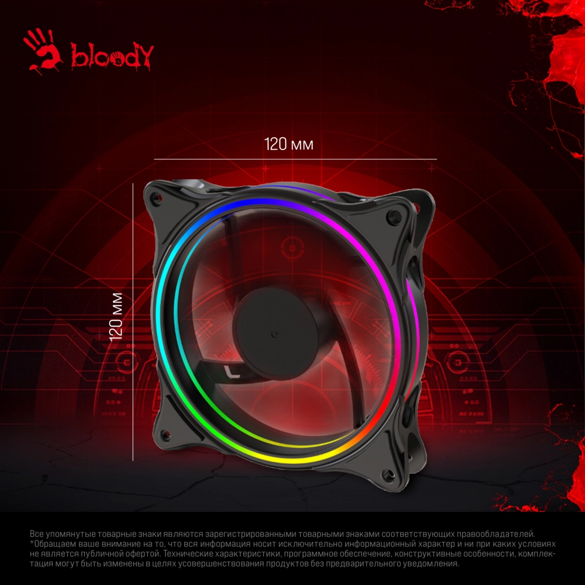 Вентилятор для корпуса Bloody BD-CF120ARGB3 ARGB 120х120x25 черный 4-pin 26дБ (BD-CF120ARGB3-BK) Ret