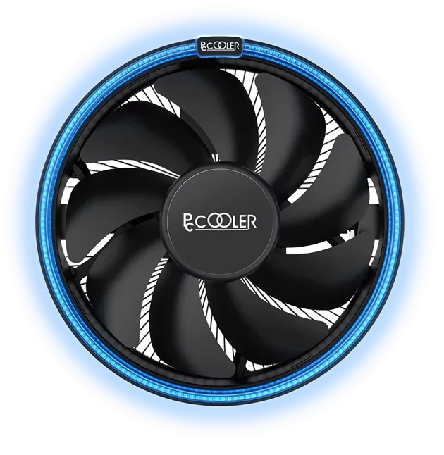 Кулер для процессора/ CPU Cooler PCCooler E126M B (92W, 4-pin PWM, 70mm, Al/Cu, -mm, Blue LED, 1x120mm, 56CFM, 26.5dBA, 1800RPM, S: 1700/1200/115X, AM5/AM4, black)