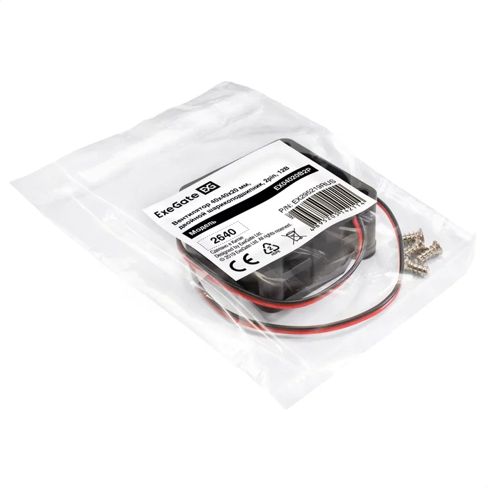 Exegate EX295219RUS Вентилятор 12В DC ExeGate EX04020B2P (40x40x20 мм, 2-Ball (двойной шарикоподшипник), 2pin, 7000RPM, 30dBA)