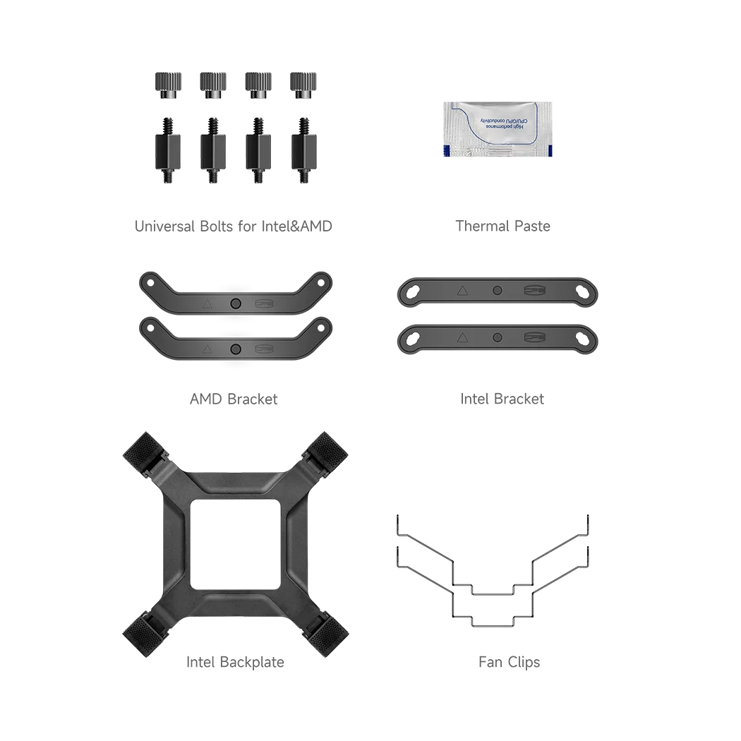 Кулер для процессора/ CPU Cooler PCCooler RT500 Digital BK (240W, 4-pin PWM, LED temp., 152mm, Al/Cu, 5x6mm, 1x120mm, 73.32CFM, 34.9dBA, 2200RPM, S: 1851/1700/1200/115X, AM5/AM4, black)