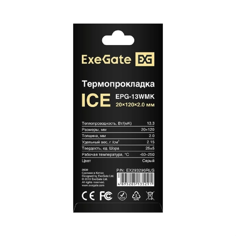 Exegate EX293296RUS Термопрокладка ExeGate Ice EPG-13WMK (20x120x2.0 mm, 13,3 Вт/ (м•К))