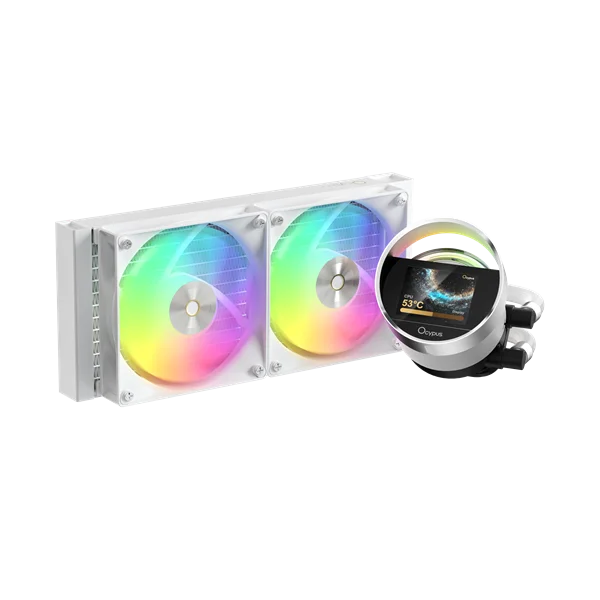 Система водяного охлаждения Ocypus Sigma L24 WH ARGB, 240mm, LCD Pump 2.4", 2x120mm ARGB fans, LGA115X/1200/1700/18XX, AM4/AM5