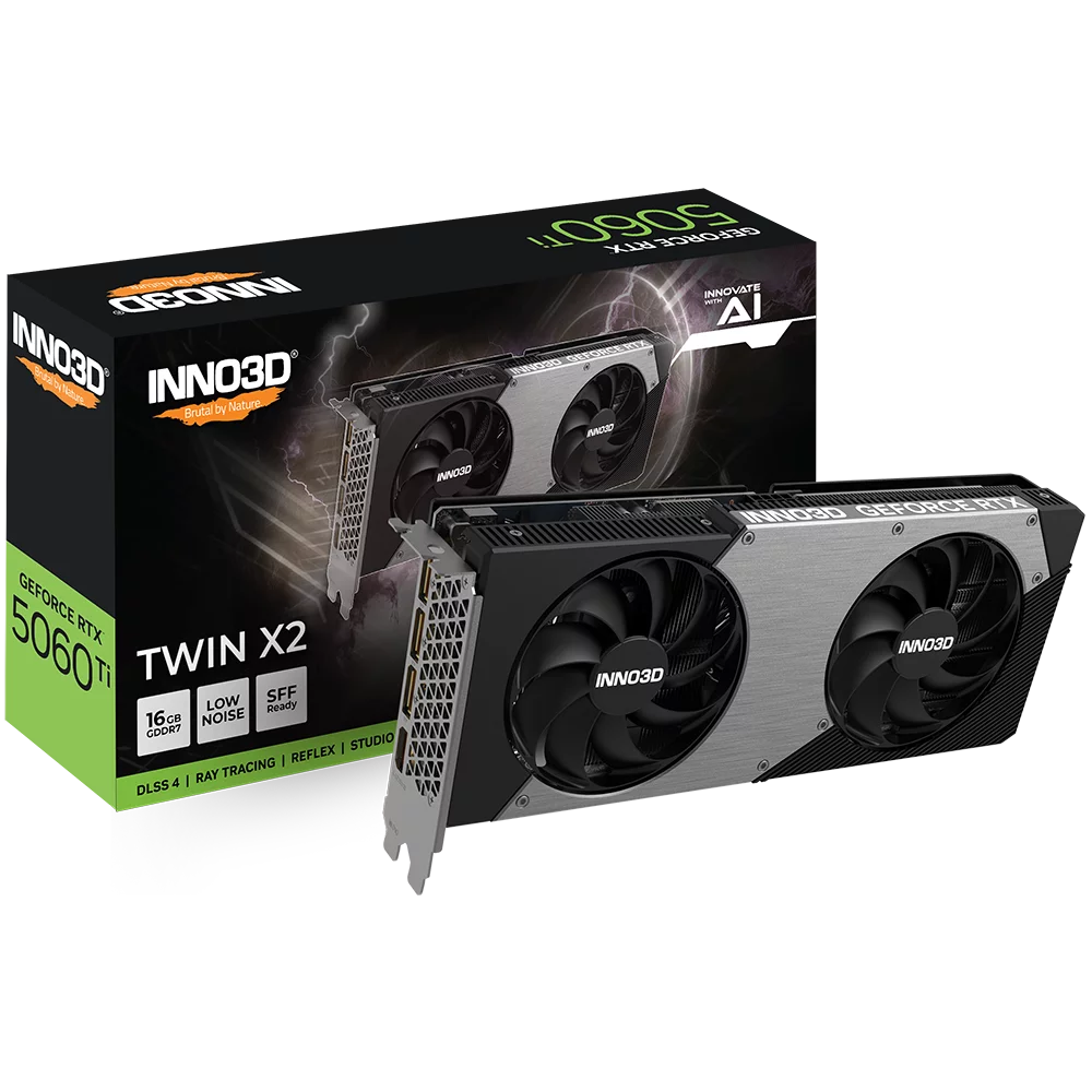Видеокарта INNO3D RTX 5060 Ti Twin X2/ / RTX5060Ti, HDMI, DP*3, 16G,D7 (N506T2-16D7-191073N)