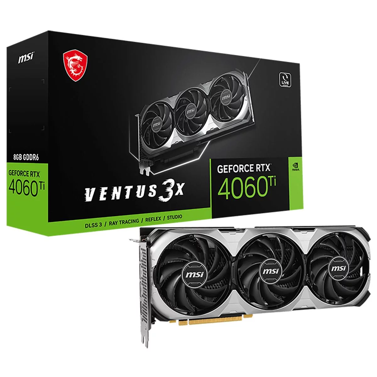 Видеокарта MSI PCI-E 4.0 RTX 4060 Ti VENTUS 3X E 8G NVIDIA GeForce RTX 4060TI 8Gb 128bit GDDR6 2535/ 18000 HDMIx1 DPx3 HDCP Ret