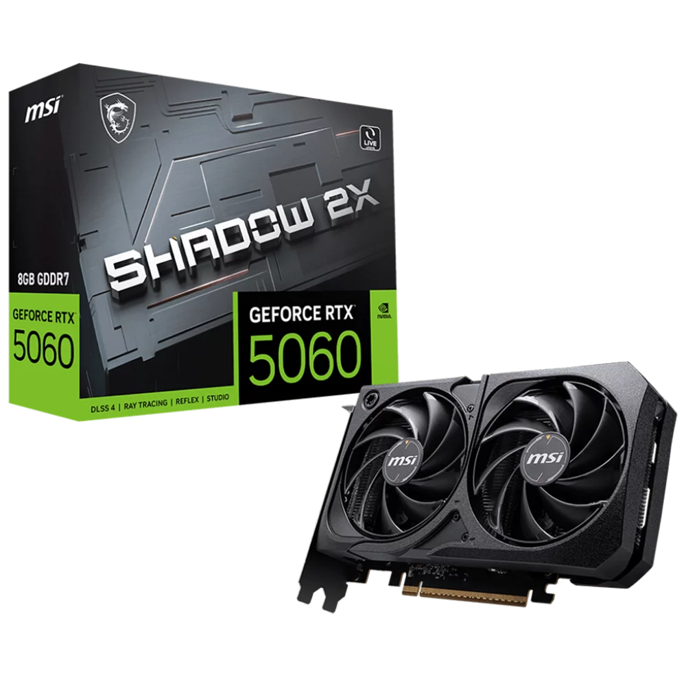 Видеокарта MSI PCI-E 5.0 RTX 5060 8G SHADOW 2X NVIDIA GeForce RTX 5060 8Gb 128bit GDDR7 2497/28000 HDMIx1 DPx3 HDCP Ret