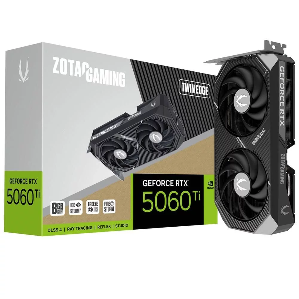 Видеокарта Zotac RTX5060Ti TWIN EDGE 8GB GDDR7 128bit 3xDP HDMI 2FAN MEDIUM PACK (ZT-B50610E-10M)