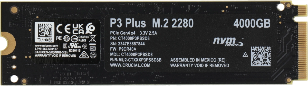 Твердотельный накопитель SSD Crucial P3 Plus CT4000P3PSSD8 4TB PCIe M.2 2280