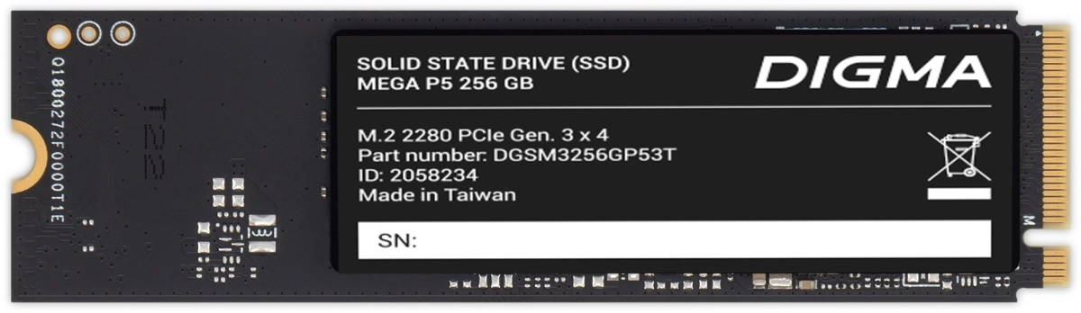 Накопитель SSD Digma PCIe 3.0 x4 256GB DGSM3256GP53T Mega P5 M.2 2280